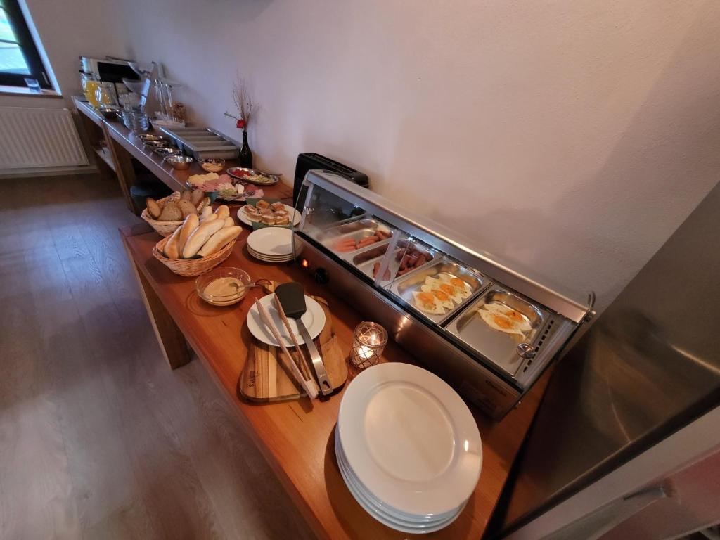 V našem penzionu si můžete užít pohodové a flexibilní stravování přesně podle svých představ. Ráno vás čekají výborné snídaně s voňavou kávou, na přání nabízíme i polopenzi s domácími jídly ze sezónních surovin. Pro ty, kdo rádi vaří sami, je připravena plně vybavená společná kuchyně s veškerým moderním zařízením – od sporáku a trouby až po myčku a kompletní nádobí. V horkých dnech osvěží náš mini bar s pivem či limonádou, večer si pak můžete posedět u venkovního ohniště a užít si klidnou atmosféru pod hvězdami.